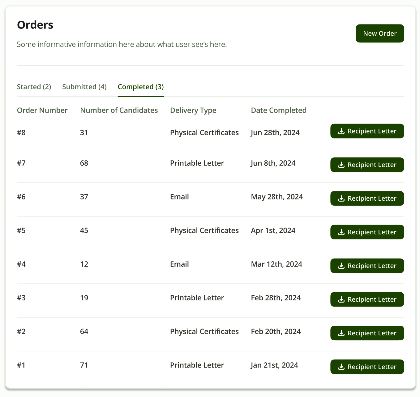 We’re rolling out recipient letters that can be provided alongside certificates—or as a standalone option.